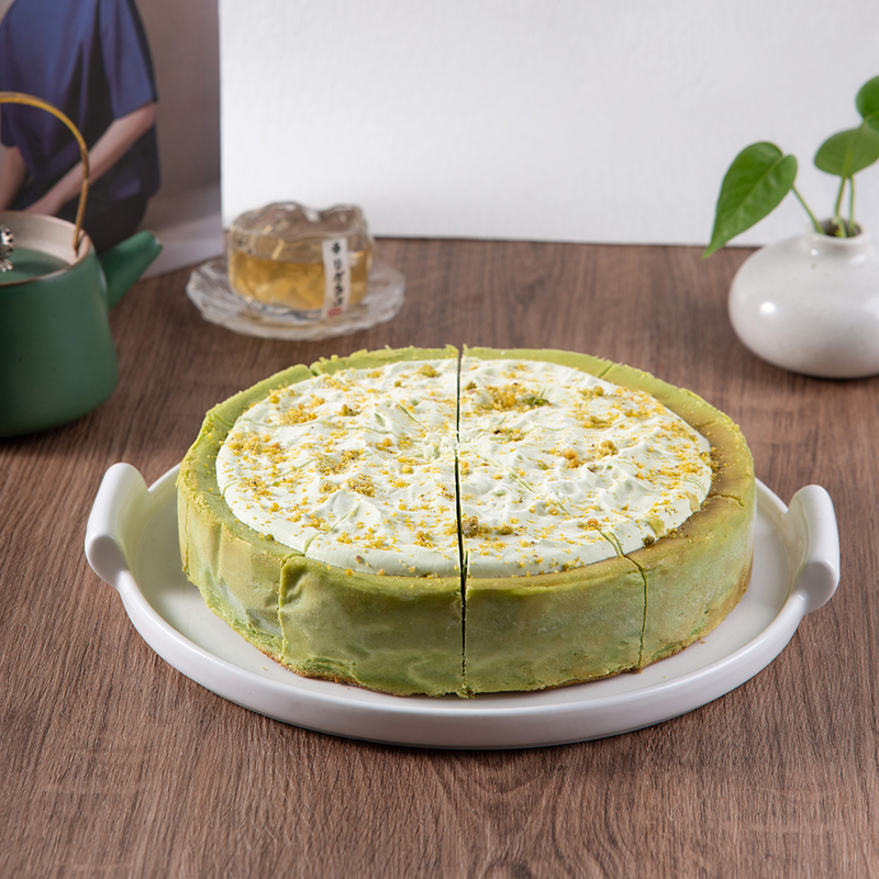 开心果巴斯克蛋糕的味道是一种颓废而独特的体验。该蛋糕采用浓郁的奶油状开心果酱制成,具有坚果和甜味,与奶酪的淡淡味道形成鲜明对比。蛋糕质地湿润致密,入口即化,口感如天鹅绒般柔软,后续撒上开心果奶油,增添了一层额外的浓郁和风味。