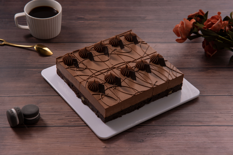 这款蛋糕的明星是天鹅绒般的巧克力慕斯,由优质黑巧克力、鲜奶油和一丝甜味混合制成。 慕斯质地柔滑,带有浓郁的巧克力味,既舒适又颓废。 其奢华的稠度为蛋糕增添了令人愉悦的丰富性,让人想起天鹅绒般的巧克力梦想。布朗尼蛋糕与慕斯的光滑度形成令人愉悦的对比,在每一口中创造出和谐的纹理混合。