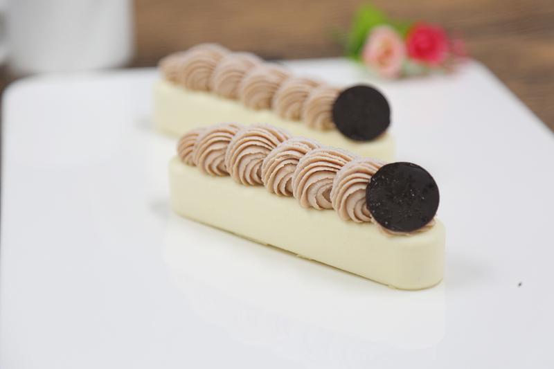 蛋糕的顶部是一层浓郁的栗子泥,雕琢精细,给这款慕斯蛋糕增添了视觉冲击力。