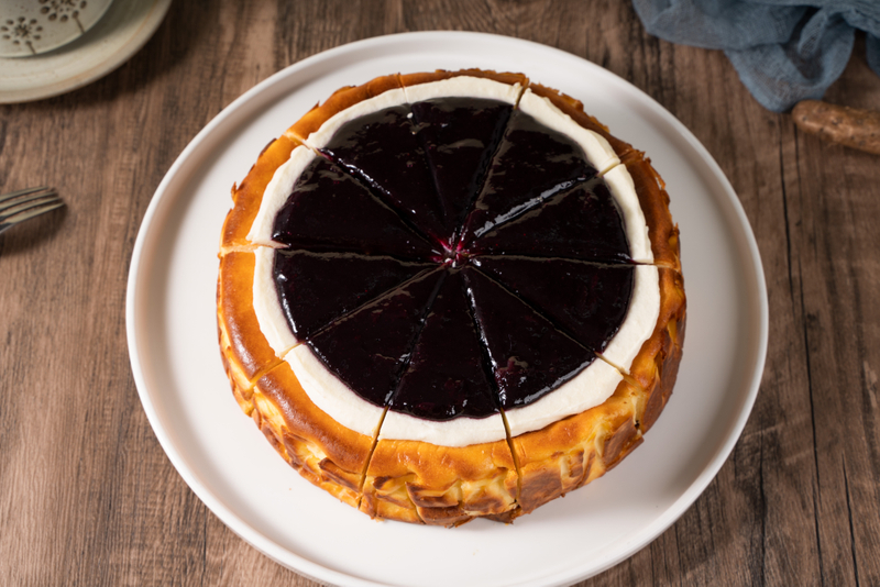 山药巴斯克芝士蛋糕是视觉和味觉的盛宴,配有浓郁的蓝莓果酱和甜美的山药果酱双重配料。蓝莓果酱的明亮果香与山药果酱的泥土、自然甜味形成鲜明对比,创造出视觉上引人注目且味道丰富的开场白。这种组合为蛋糕增添了令人愉悦的复杂性和色彩。