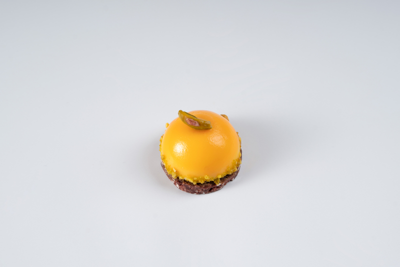 蛋糕是檸檬巧克力慕斯,裡面有檸檬餡料和榛子底。慕斯的濃郁與檸檬餡料的新鮮相結合,堪稱完美。