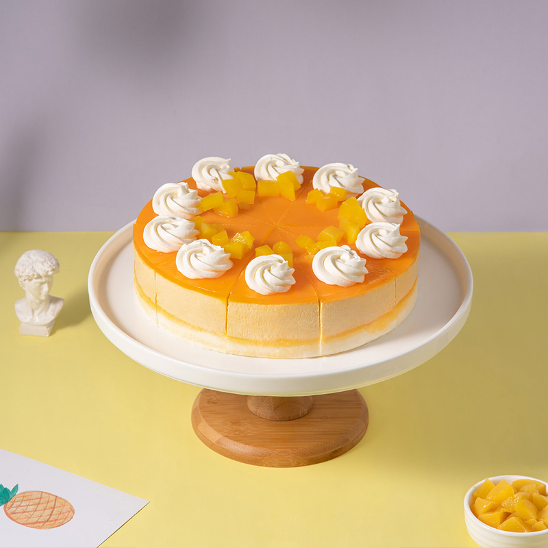 盡情享受芒果慕斯蛋糕,其熱帶風味和奶油奶酪配料將您帶入味覺天堂。每一叉都是對異國情調的慶祝,提醒人們生活中充滿活力和清新的時刻。