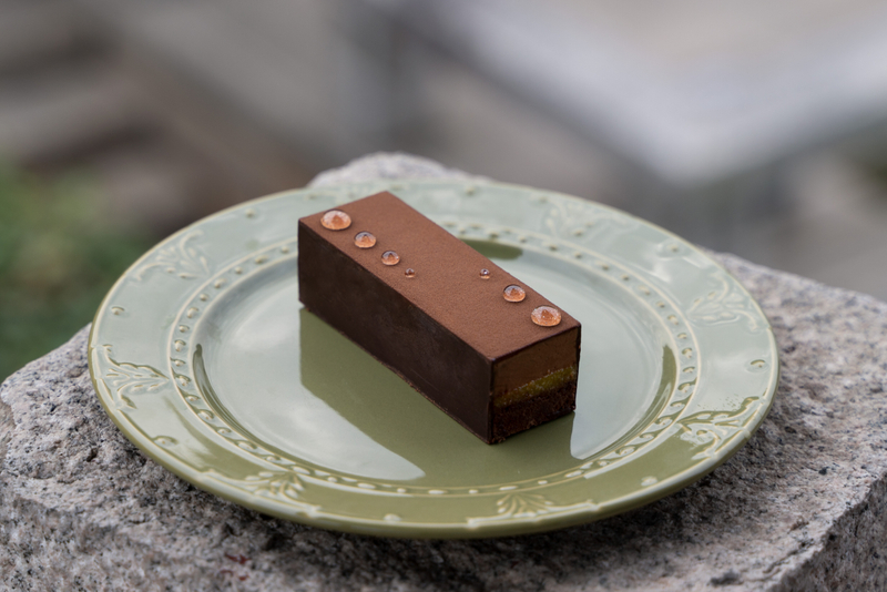 蛋糕的核心是充滿活力的橙子餡料,充滿新鮮橙子的明亮、濃郁的味道。這一層與上面濃郁的巧克力慕斯增添了清爽和橙色的對比,創造了甜味和濃郁香氣的令人愉悅的平衡。橙子餡料不僅增強了蛋糕的複雜性,還帶來了一陣新鮮感,讓每一口都和諧地融合了豐富和濃郁的味道。
